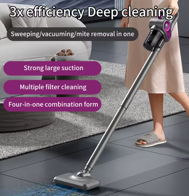 Esta aspiradora inalámbrica multifuncional es la herramienta definitiva para mantener un hogar impecable con el mínimo esfuerzo. Gracias a su versatilidad 4 en 1, permite realizar limpiezas profundas en suelos, alfombras y muebles, eliminando desde partículas finas hasta ácaros. Su diseño ligero y ergonómico la convierte en un dispositivo esencial para la organización y desinfección del hogar moderno.