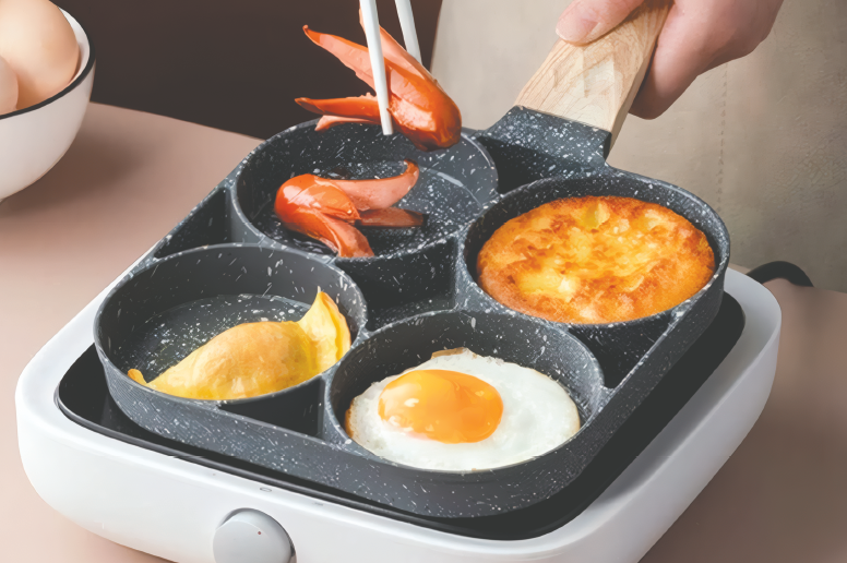 Lleva la eficiencia a tu cocina con esta sartén diseñada para maximizar tu tiempo. Gracias a sus cuatro cavidades independientes, podrás preparar diferentes alimentos a la vez —como huevos, tortitas, verduras o mini hamburguesas— sin mezclar sabores y manteniendo una cocción uniforme en cada sección.